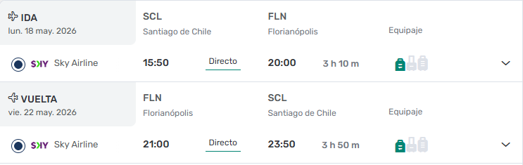 - Ticket Aéreo Santiago / Florianopolis/ Santiago vía SKY. DIRECTO