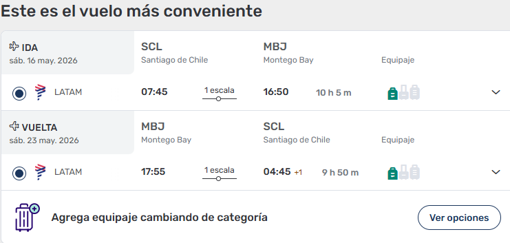 - Ticket Aéreo Santiago / Montego Bay/ Santiago vía LATAM. ÚLTIMOS CUPOS