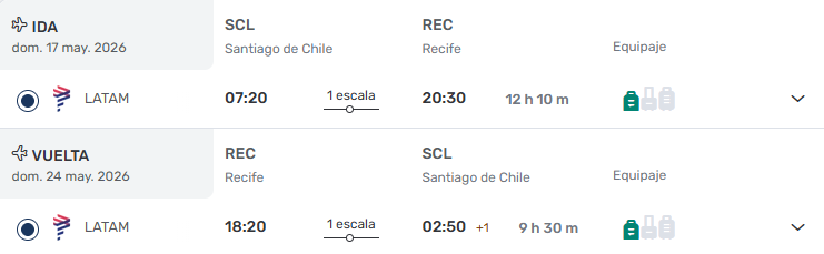 - Ticket Aéreo Santiago / Recife/ Santiago vía LATAM. ÚLTIMOS CUPOS