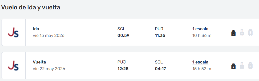 - Ticket Aéreo Santiago / Punta Cana/ Santiago vía JETSMART. ULTIMOS CUPOS