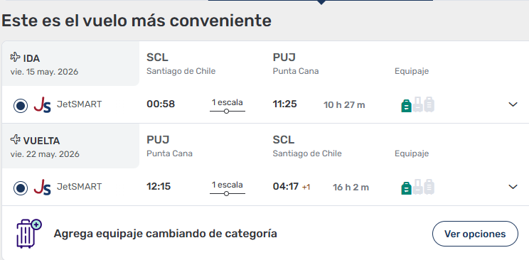 • Ticket Aéreo Santiago / Punta Cana/ Santiago vía JETSMART. CUPOS LIMITADOS