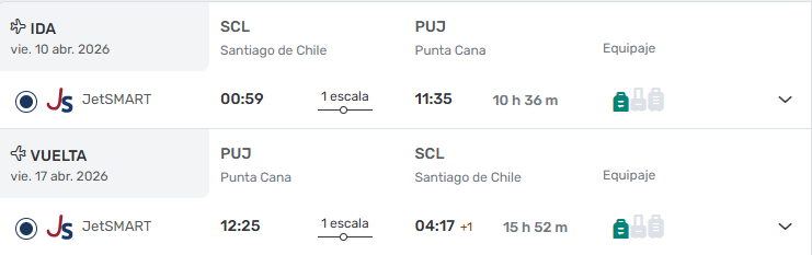 • Ticket Aéreo Santiago / Punta Cana/ Santiago vía JETSMART. ULTIMOS CUPOS