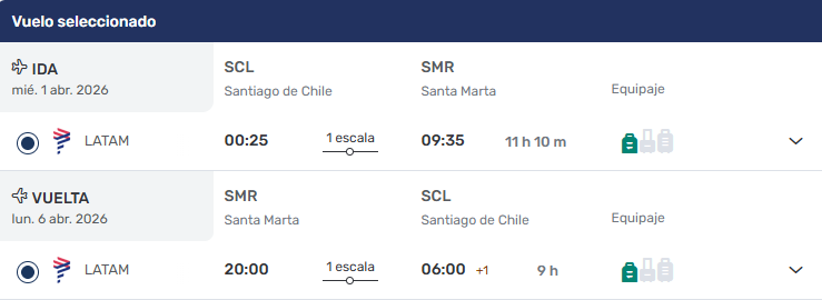- Ticket Aéreo Santiago / Santa Marta/ Santiago vía LATAM. ÚLTIMOS CUPOS