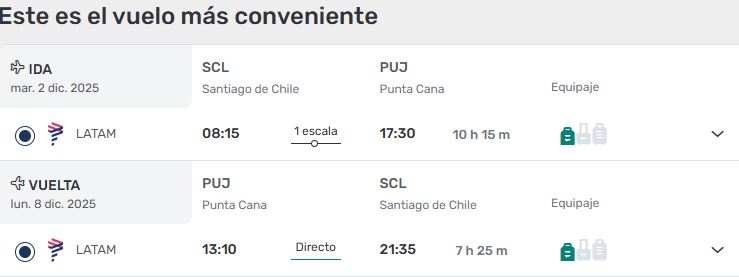 • Ticket Aéreo Santiago / Punta Cana/ Santiago vía LATAM. ULTIMOS CUPOS
