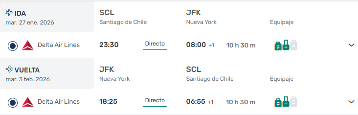 - Ticket Aéreo Santiago / New York/ Santiago vía DELTA. CUPOS LIMITADOS