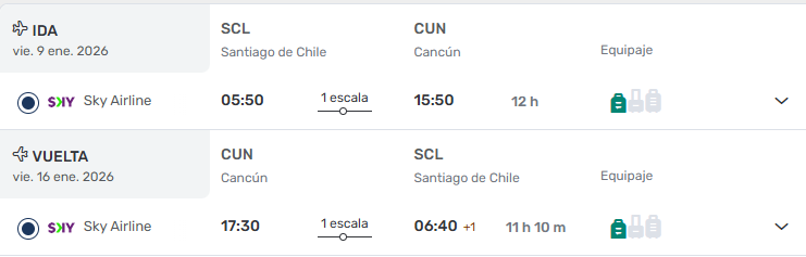 - Ticket Aéreo Santiago / Cancun/ Santiago vía SKY. ULTIMOS CUPOS