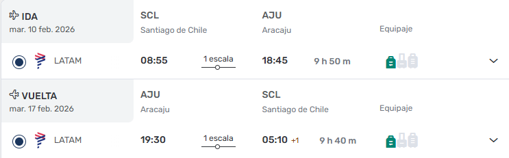 - Ticket Aéreo Santiago / Aracajú/ Santiago vía LATAM. ULTIMOS CUPOS