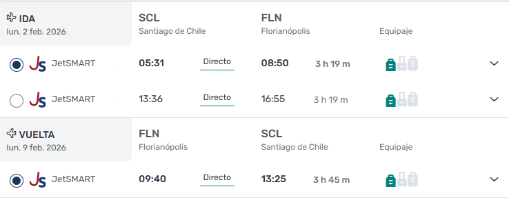 - Ticket Aéreo Santiago / Florianopolis/ Santiago vía JETSMART. ÚLTIMOS CUPOS