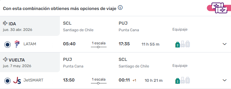 • Ticket Aéreo Santiago / Punta Cana/ Santiago vía LATAM y JETSMART. ULTIMOS CUPOS