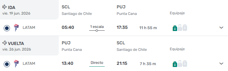 - Ticket Aéreo Santiago / Punta Cana/ Santiago vía LATAM. ÚLTIMOS CUPOS