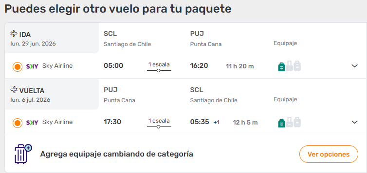 ✈️ Ticket aéreo Santiago / Punta Cana / Santiago vía SKY