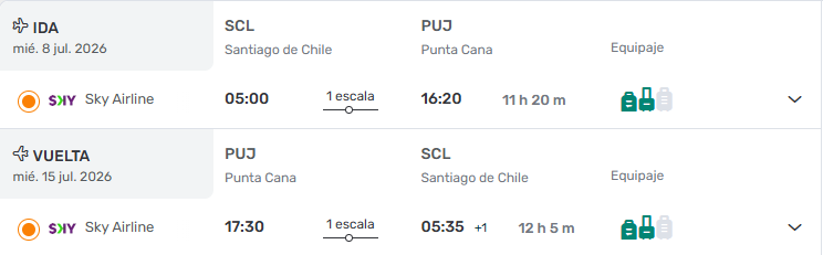 - Ticket Aéreo Santiago / Punta Cana/ Santiago vía SKY.