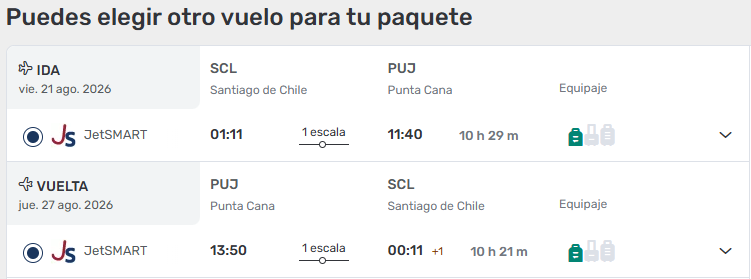 ✈️ Ticket aéreo Santiago / Punta Cana / Santiago vía JETSMART