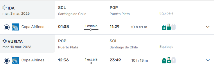 - Ticket Aéreo Santiago /Puerto Plata/ Santiago vía COPA. ÚLTIMOS CUPOS