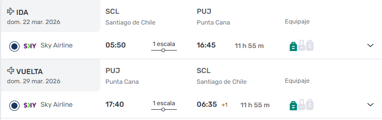 • Ticket Aéreo Santiago / Punta Cana/ Santiago via SKY. ULTIMOS CUPOS