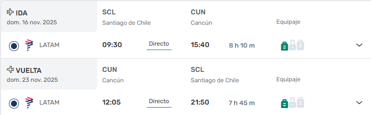 - Ticket Aéreo Santiago / Cancun/ Santiago vía LATAM. Directo. ULTIMOS CUPOS
