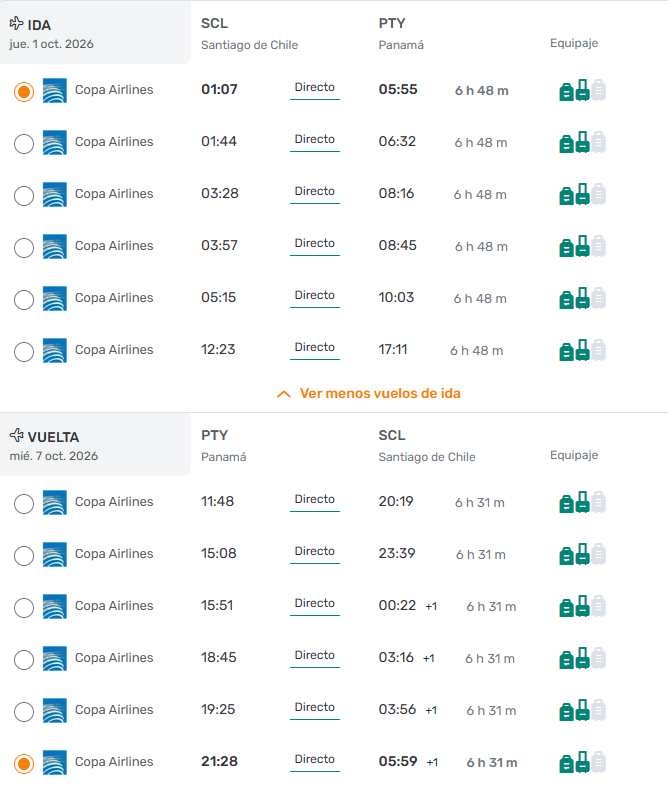 Ticket Aéreo Santiago / Panamá/ Santiago vía COPA.