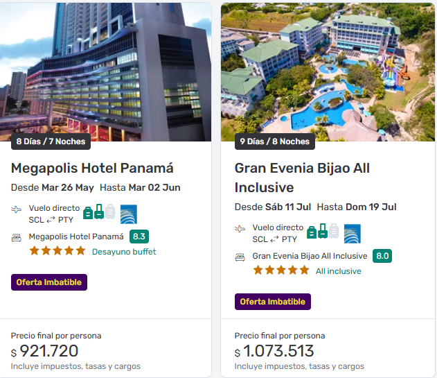 Si deseas evaluar otras fechas, hoteles o aerolíneas, ¡los tenemos todos!
