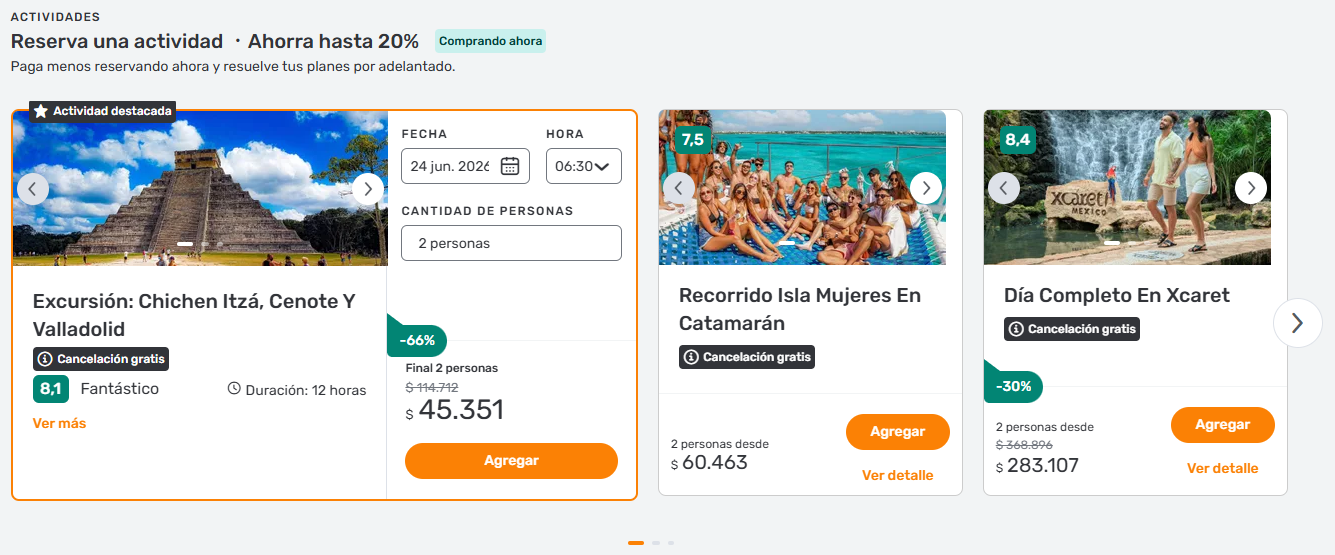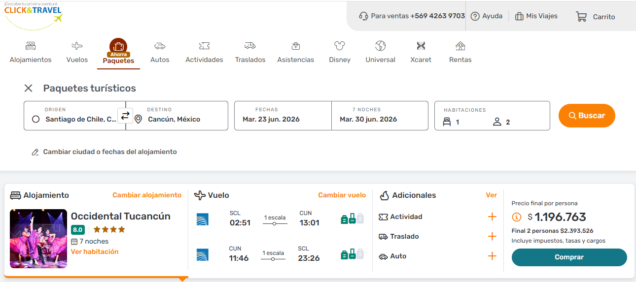 En Click & Travel encontrarás los mejores paquetes a Cancún para vivir unas vacaciones inolvidables. Aprovecha nuestras opciones de paquetes turísticos baratos y reserva hoy mismo el viaje que estabas buscando. Cotiza aquí y accede a descuentos exclusivos para hacer realidad tus vacaciones soñadas.