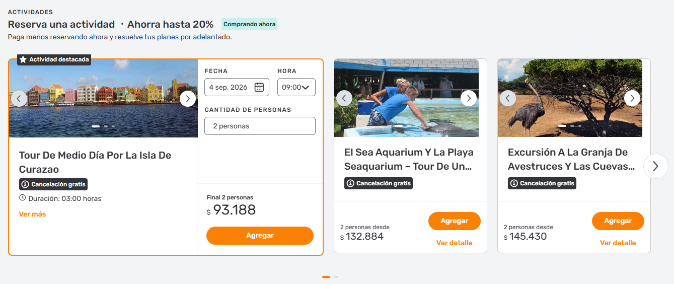 En Click & Travel te ofrecemos excelentes opciones de paquetes a Curacao ya armados, para que elijas el que mejor se adapte a tu viaje. Puedes filtrar según: