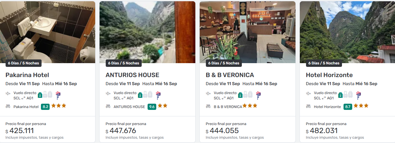 ✔️ Extras como traslados, excursiones o arriendo de auto