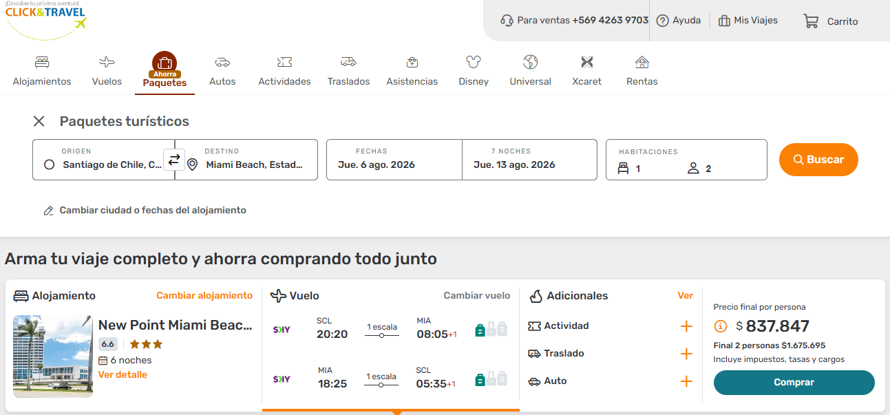 Reserva ahora tus paquetes a Miami con Click & Travel y comienza a disfrutar desde hoy tus próximas vacaciones.