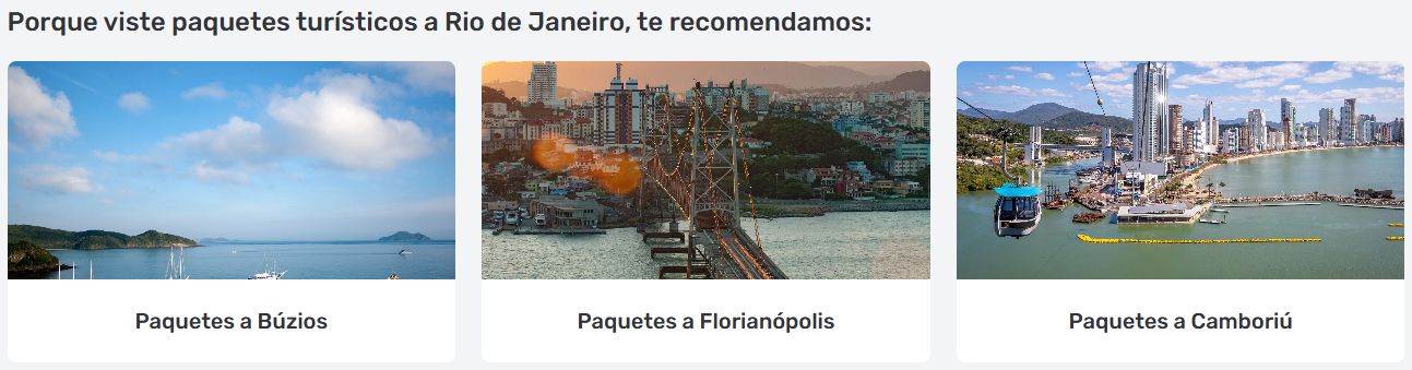 En Click & Travel encontrarás los mejores paquetes a RIO para vivir unas vacaciones inolvidables. Aprovecha nuestras opciones de paquetes turísticos baratos y reserva hoy mismo el viaje que estabas buscando. Cotiza aquí y accede a descuentos exclusivos para hacer realidad tus vacaciones soñadas.