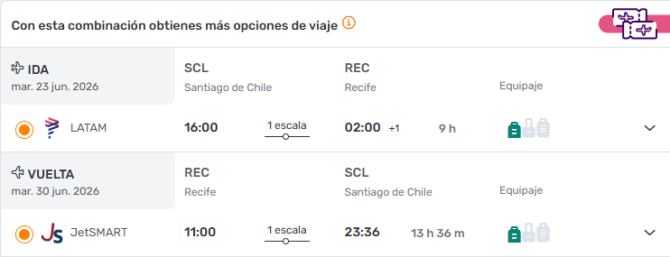 - Ticket Aéreo Santiago / Recife/ Santiago vía LATAM. ÚLTIMOS CUPOS