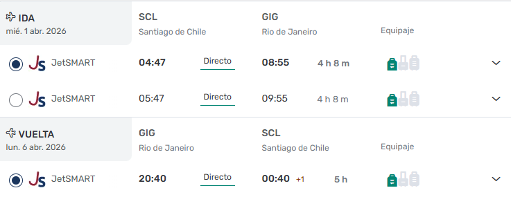 - Ticket Aéreo Santiago / Rio de Janeiro/ Santiago vía JETSMART. DIRECTO