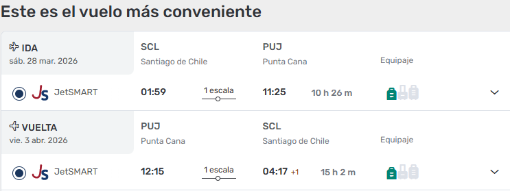 • Ticket Aéreo Santiago / Punta Cana/ Santiago vía JETSMART. CUPOS LIMITADOS