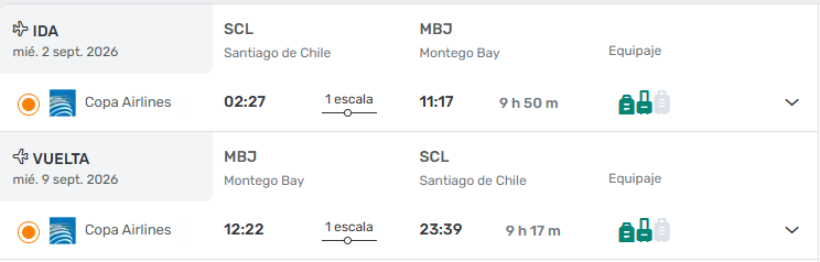 Ticket Aéreo Santiago / Montego Bay/ Santiago vía COPA.