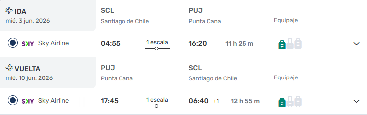 - Ticket Aéreo Santiago / Punta Cana/ Santiago vía SKY (escala corta). ULTIMOS CUPOS